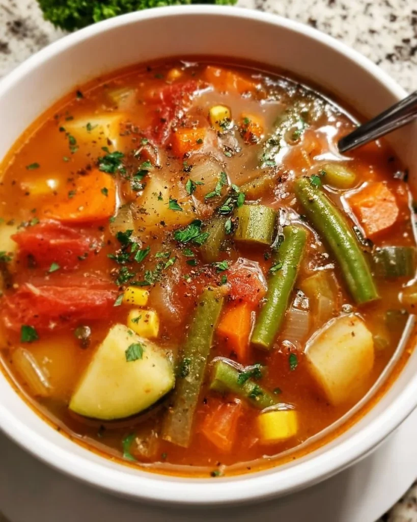 This easy vegetable soup is packed with vibrant veggies and hearty flavors, perfect for a quick weeknight meal.