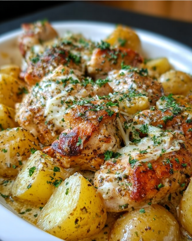 Garlic Parmesan Crockpot Chicken and Potatoes is a delicious weeknight meal that combines tender chicken and buttery baby potatoes infused with savory garlic and Parmesan flavors, all cooked to perfection in a crockpot.