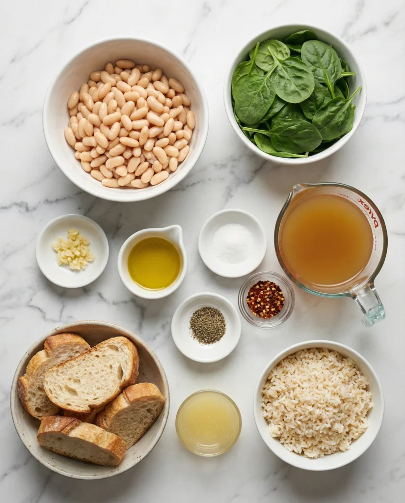 Add the drained and rinsed white beans, vegetable broth, salt, black pepper, and red pepper flakes. Bring to a gentle simmer.Let the flavors meld.Add spinach