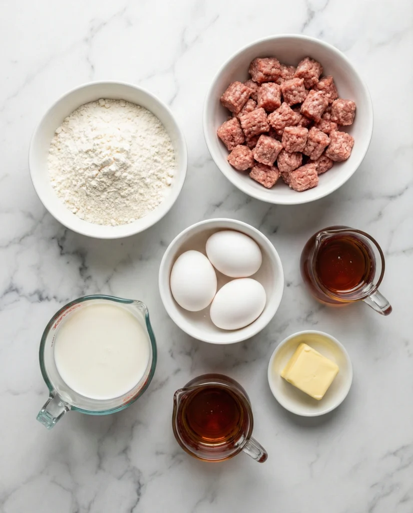 In a skillet over medium heat, cook the sausage until browned and crumbly. Drain excess grease.Mix Batter