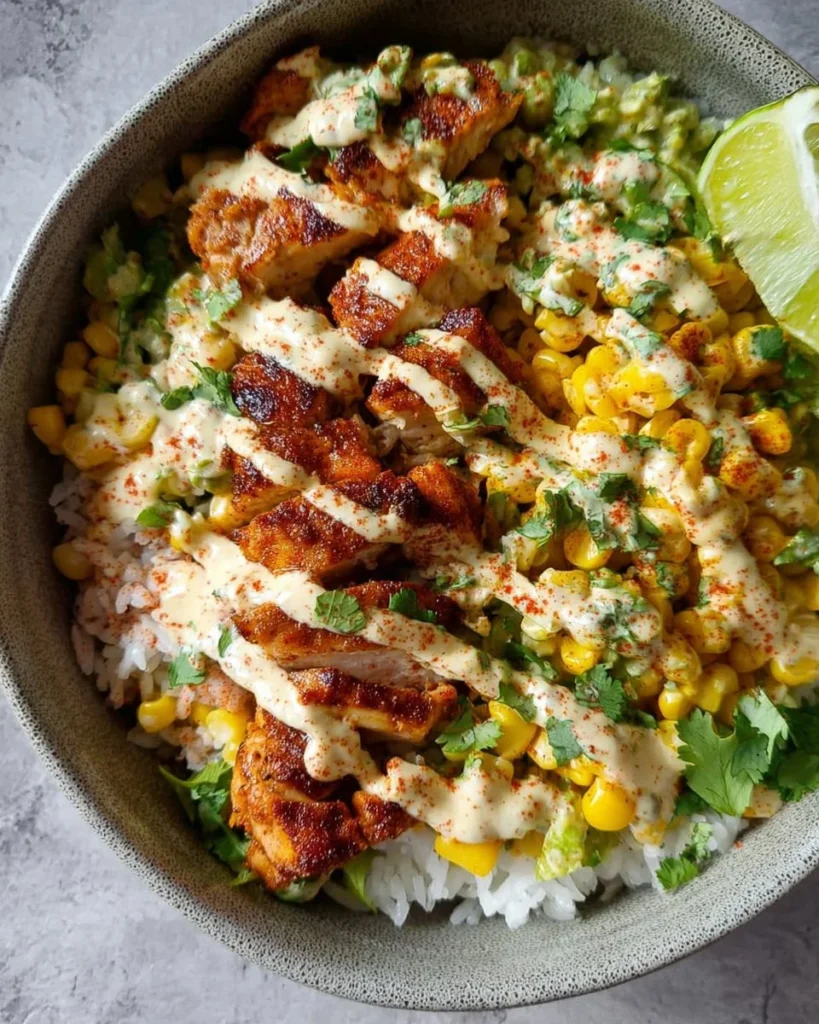 No matter where you are in your cooking journey, I hope you find joy and a sense of belonging in making these Street Corn Chicken Rice Bowls. Not only are they delicious, but they also embody that warm feeling of home—like being wrapped in a cozy blanket on a chilly day. Give this recipe a try, tweak it to your heart’s content, and don’t forget to share your thoughts and creative spins in the comments below! Happy cooking!